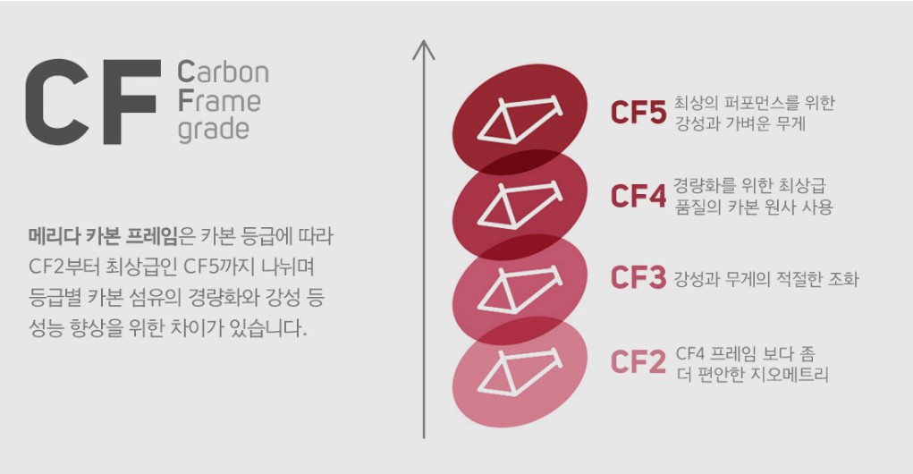 작년 모델과 비교하면 작년에는 CF2 등급의 카본 프레임을 사용