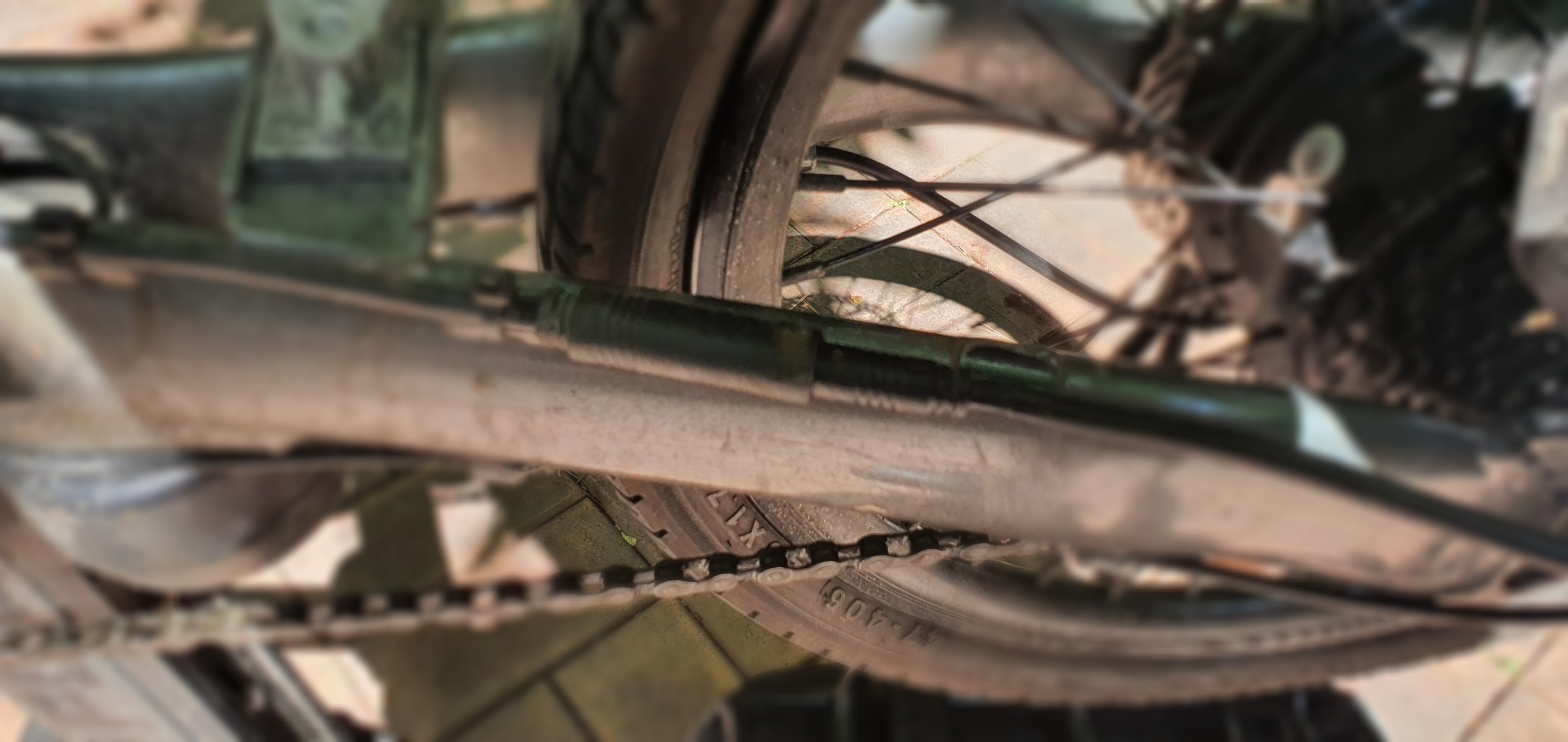 말씀드린 대로 정비를 전혀 안 하다 보니 체인, 뒷 변속기, 스프라켓에 엄청난 기름 때까 끼어있습니다. 게다가 뒷 타이어는 삭아 버리기까지 했습니다.