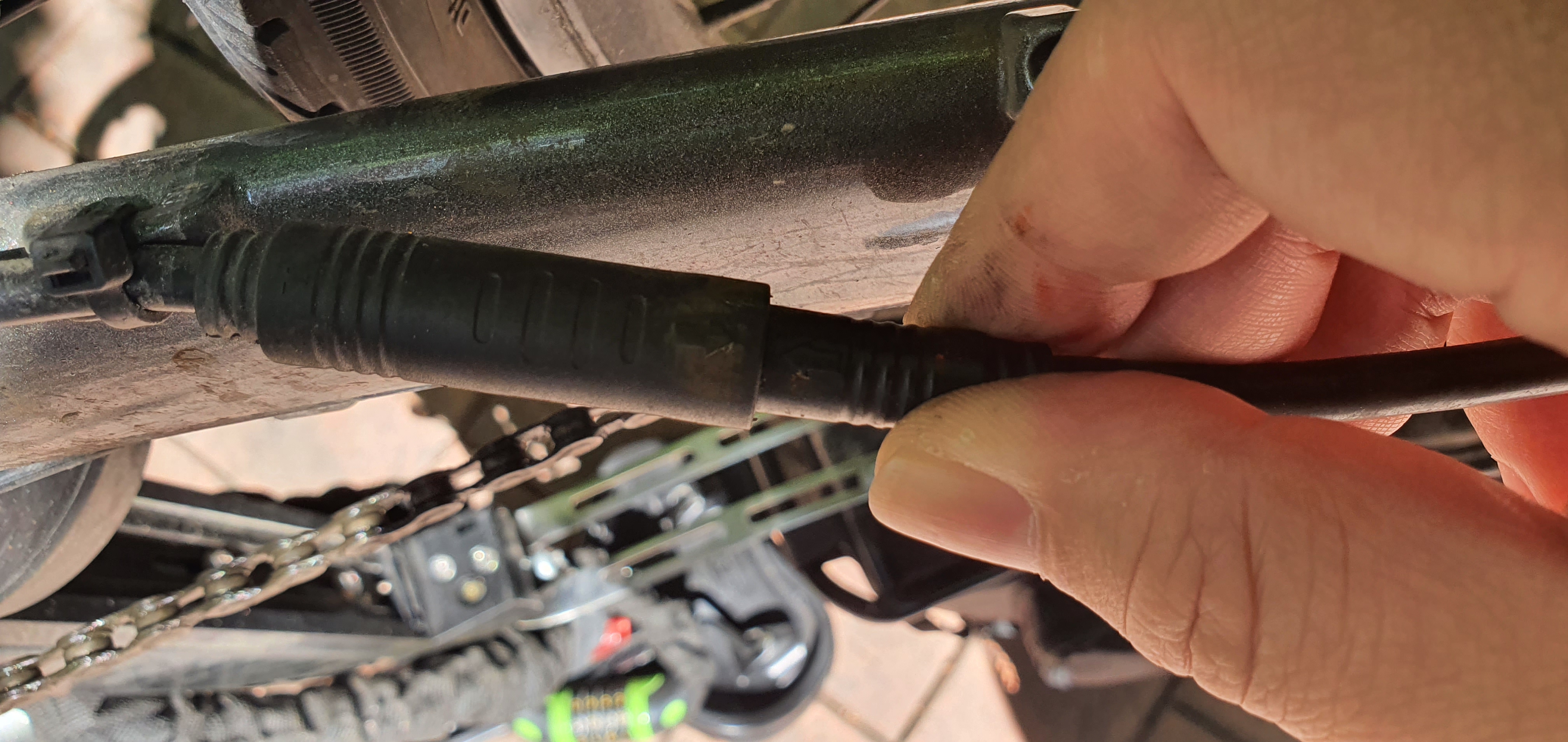 당연하지만 배터리에서 나오는 에너지는 모터에 연결됩니다. 그래야 모터가 구동되기 때문인데요 제 자전거는 중간에 전기자전거 전용 컴퓨터와 연결되기 때문에 관련된 케이블을 분리해야 합니다.
