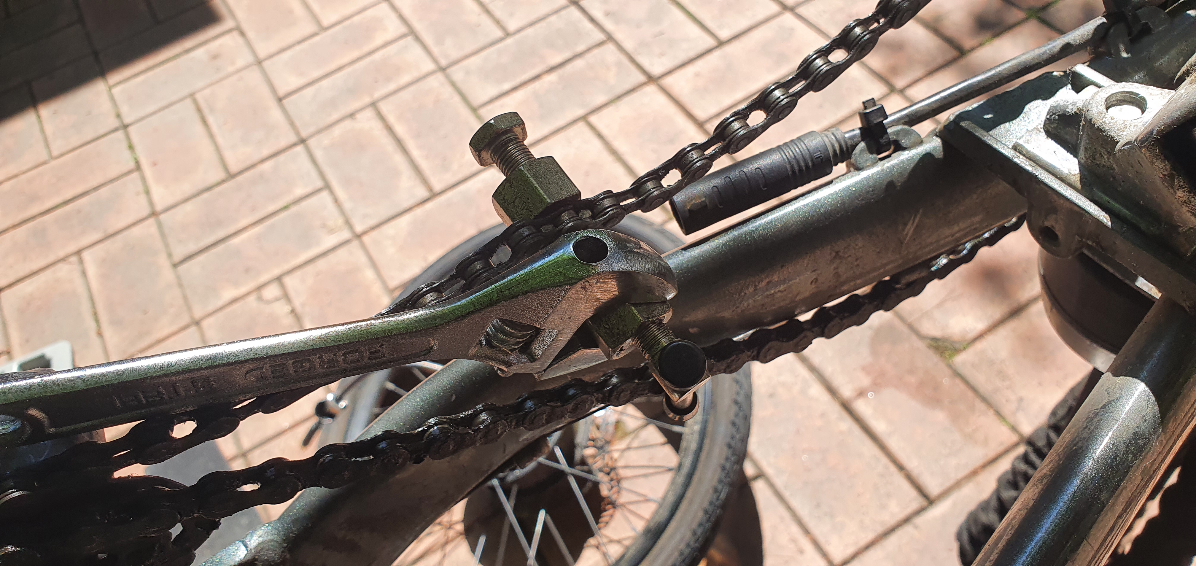 체인 커터를 할 때 오래된 체인인 경우 뻑뻑해서 잘 풀리지 않는 경우가 있는데요 그랠 때는 몽키 스패너를 활용할 수 있도록 체인 커터가 육각 너트 모양으로 생겼으니 그곳에 몽키스패너 등을 물리고 풀면 쉽게 체인을 제거할 수 있습니다.