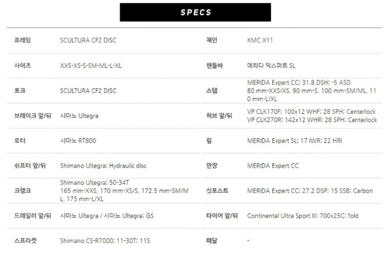 핸들바는 리액토(메리다 익스퍼트 CW), 스컬트라(메리다 익스퍼트 SL)의 차이가 있으며 림도 차이가 있습니다. 타이어는 똑같이 컨티넨탈 울트라 스포츠 3을 사용하였습니다.
