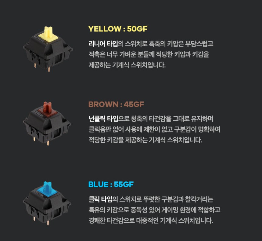 황축(yellow) 게임과 사무용 모두에 적합해 보입니다.