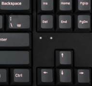 LED 인디케이터 위치가 특이한데요 이미지로만 하얀색 키보드 이미지에서 발견할 수 없으나 검은색 키보드를 보시면 숫자 키패드 위에 위치하고 있는 불빛을 확인할 수 있습니다.