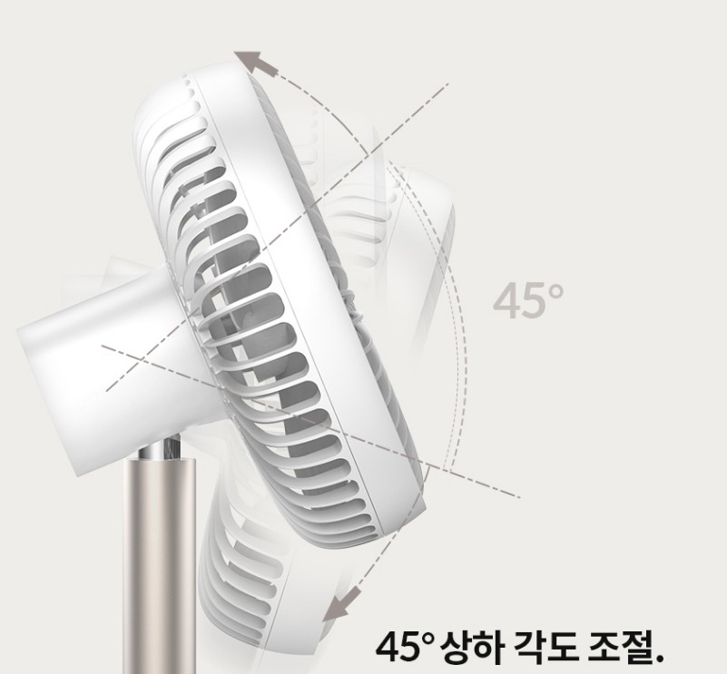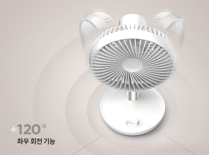 게다가 루메나 선풍기는 좌우 회전을 하는데요 120도 좌우 회전 기능을 지원합니다. 이거 굉장히 유용해 보입니다. 바람을 직격으로 계속 쐬고 있으면 간혹 추운 느낌이 나는데 루메나 선풍기는 좌우 회전을 시킴으로써 바람을 직격으로 계속 맞지 않게 할 수도 있습니다. 게다가 상하 조절까지 가능합니다. 좌우 회전 기능은 작동상태에서 조그 버튼을 2초간 누르면 회전 운전을 시작하게 되며 회전 운전 종료 시 헤드가 다시 정면으로 복귀해서 정지합니다.