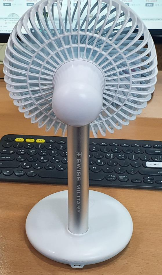여름을 많이 타는 체질이기 때문에 저 또한 스탠드형 미니 선풍기를 가지고 있습니다. 저는 스위스 밀리터리 SMA-MF60 모델로 바람세기는 5단에 3 엽 날개 버튼식이고 충전하면 12시간 정도 사용이 가능한 선풍기입니다.