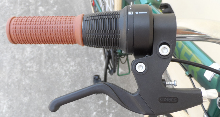 변속레버는 손가락으로 변경하는 방식이 아닌 돌려서 변속하는 방식인데요 상대적으로 변속에 대한 대응이 떨어지기는 하지만 하이브리드로 높은 속도를 내기 어렵다는 점을 감안했을 때는 적당한 선택으로 보입니다. 그립과 변속레버 브레이크 레버는 한 곳에서 조정이 가능하도록 되어 있기에 사용성에서도 나쁘지 않습니다