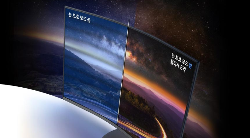 화면 깜빡임을 줄여주는 플리커 기술 및 유해한 블루라이트를 최소화하여 좀 더 눈의 부담을 줄였습니다. 눈 보호 모드가 있습니다. 아무래도 9시간 이상 업무를 하는 경우나 영상을 시청하는 경우 특히 게임은 장시간 집중해서 하는 경우가 있기 때문에 눈에 많은 피로감이 있는 게 사실입니다. 때문에 장시간 모니터를 바라봐야 하는 경우라면 매우 좋은 기능이라 하겠습니다.