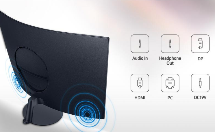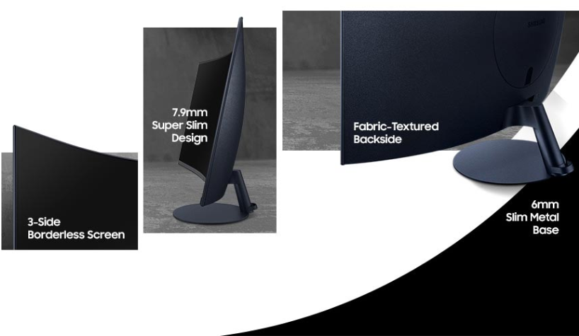 특징으로는 세계 최초의 1000R 커브드 스크린이고 5W 스피커가 내장되어(68.6cm 및 80.1cm 모델에만 탑재) 있습니다. 베젤이 매우 미니멀하게 얇습니다. 후면의 슬림 메탈 스탠드와 디스플레이가 조화롭게 어울려 디자인은 세련되어 보입니다.