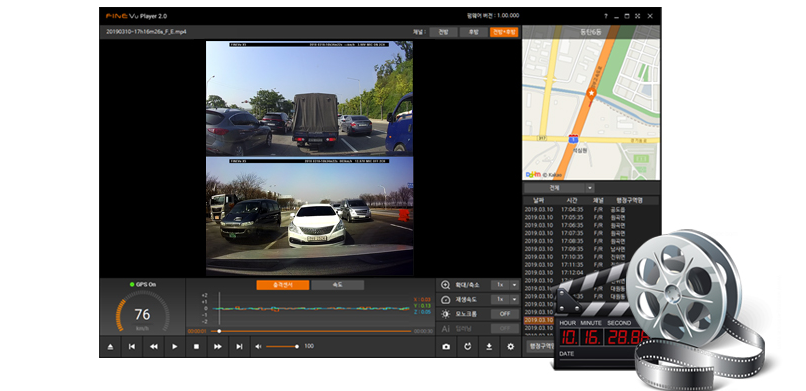 개별 플레어어를 지원하고 있습니다. 이를 통해 영상의 백업, 캡처, 확대, 속도 조절 및 분석이 가능하며 행정구역 표시 및 녹화된 위치도 확인할 수 있습니다.