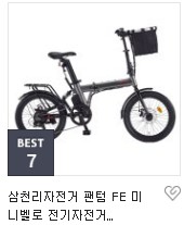 전기자전거 쇼핑 분야에서 판매 순위 7위에 랭크되어 있고 배터리 용량 7.8Ah를 사용한 것에 비해 가격은 76만 원 정도로 비교적 합리적인 가격으로 구매가가 형성되어 있습니다.