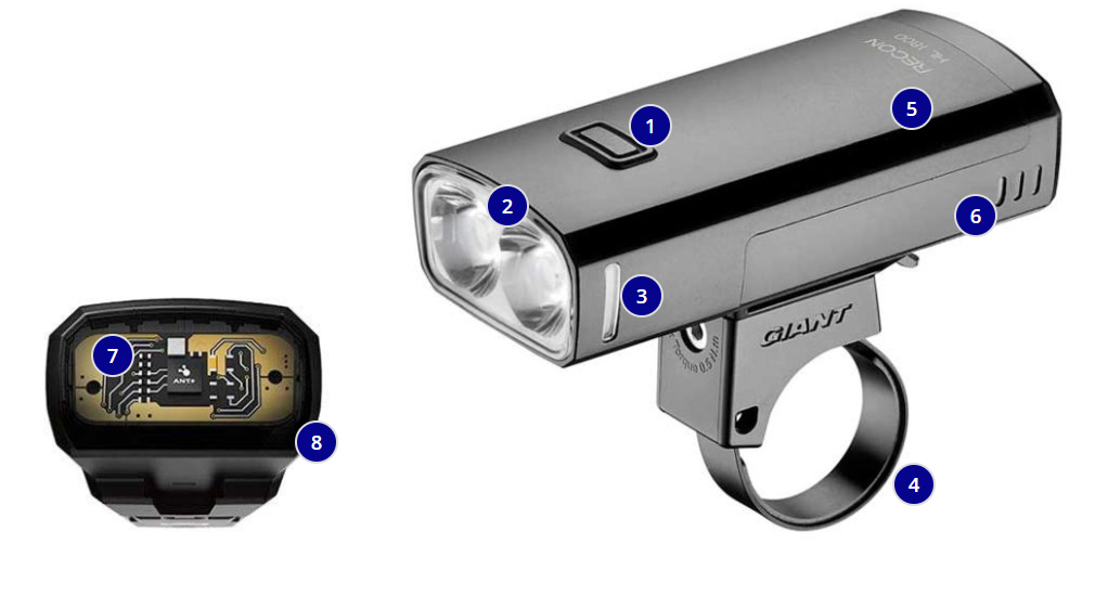 주변 조도를 측정하고 환경에 맞게 라이트의 출력을 조정되는 스마트 모드 라이트 센서가 탑재, 많이 사용하시는 가민 시리즈의 속도계와 호환하고 배터리 정보 및 라이트 모드를 속도계 스크린에서 확인, ANSI 표준 인증 루멘 출력 및 사용시간, 270도 이상의 가시성을 확보하는 측면 광학장치, 열기를 효율적으로 분산하는 CNC 공정 알루미늄 구조, 전원 방전 전에 남은 사용 시간을 알리는 전원 상태 표시, 고프로 마운트가 포함 되어있습니다.