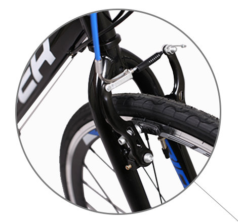 브레이크는 V브레이크입니다. 손쉽게 유지관리가 편하고 브레이크 밸런스 조절도 조금만 요령을 알면 다 가능하기 때문에 개인적으로는 선호하는 형태의 브레이크 입니다. 단 림이 미끄러울 경우 제동력이 떨어지니 주행 전에 잘 확인하시고 타면 더욱 안전하게 가벼운 라이딩을 즐기실 수 있습니다. 디스크 브레이크에 비해서는 제동력이 떨어지는 부분이 있습니다.