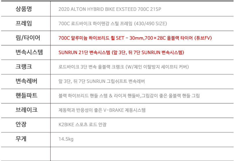 알톤 엑스티드 700C 21 하이브리드 자전거 2018년