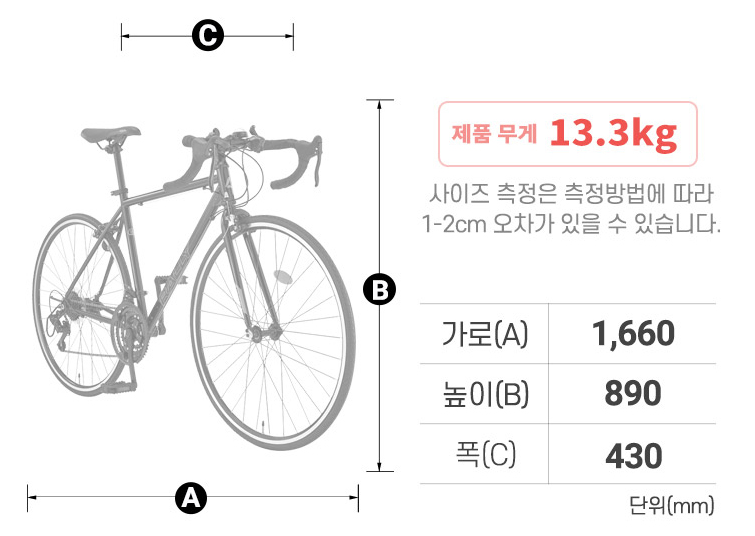 권장 신장은 155~180cm로 700C 스틸 프레임의 사이즈가 440/490입니다.
