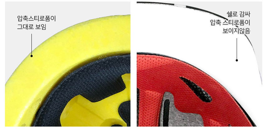 EPS로 만들었으며 외피 및 내피의 분리현상이 없으며 충격이 가해지면 좀더 많은 충격을 흡수하기 때문에 안전성이 높아보입니다. KC인증을 통과했습니다. 구매후에 꼼꼼히 살펴보시고 하자가 있으면 교체하시면 되겠습니다