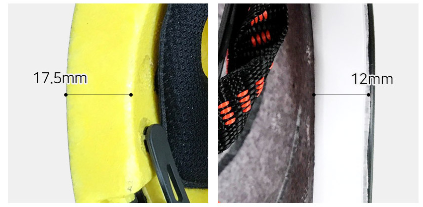 커버의 마감은 압축 스티로폼 부분을 쉘로 감싸서 압축 스티로폼이 보이지 않도록 처리되어 있습니다. 특히 압축 처리가 잘 되어있어 두께는 12mm 정도로 얇고 경량화에도 어느 정도 도움을 주는 것 같습니다. 하지만 타제품에도 더 가벼운 헬멧은 있습니다. 색상은 매우 다양한데 12가지 정도입니다. 아래 이미지로 설명을 대처하겠습니다.