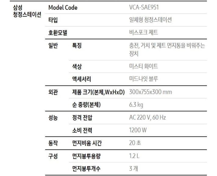 청정 스테이션 먼지 필터, 삼성전자 전용 봉투를 구매해야 하는 부분, 2019.2020 버전 제트 구매자는 업그레이드된 각종 액세서리가 호환되지 않습니다.