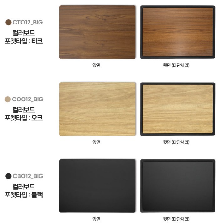 상판 테이블의 표면재는 내열성, 내마모성이 좋은 LPM으로 측면에 블랙염료가 첨가되어 깔끔한 마무리를 하였습니다. LPM(Lower Pressure Melamine)이란 나무의 섬유질을 추출하여 접착제와 섞어서 열과 압력으로 가공하는 목재인 MDF에 멜라민 수지 소재의 시트지를 표면 가공 처리한 것입니다. 일반 MDF책상에 비해서 마모 및 스크래치 변형에 강합니다.