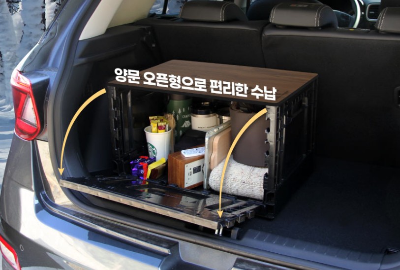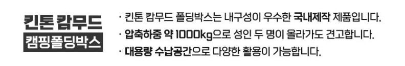 제조사는 칸톤으로 브랜드명도 같습니다 등록은 21년 2월, 폴딩 박스 및 박스 상판을 지원하고 MDF 소재를 사용했습니다 무게는 4.2KG으로 캠핑용품 등을 수납한다면 무게는 좀 나갈 것 같습니다. 특징으로는 전면 개폐 도어로 박스가 포개져도 내용물을 쉽게 꺼낼 수 있으며, 테이블 겸용입니다. 가격은 29,900원(최저가 기준)입니다. 특히 마음에 드는 부분은 차크닉에도 활용할 수 있다는 점입니다.