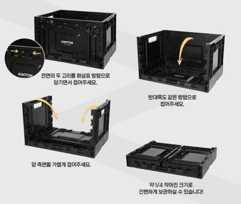 사용하지 않을때는 박스의 부피를 줄여서 많은 장소를 차지하지 않고도 보관할 수 있습니다. 4단으로 접을 수 있기 때문에 큰 어려움 없이 조립 보관이 가능해 보입니다.