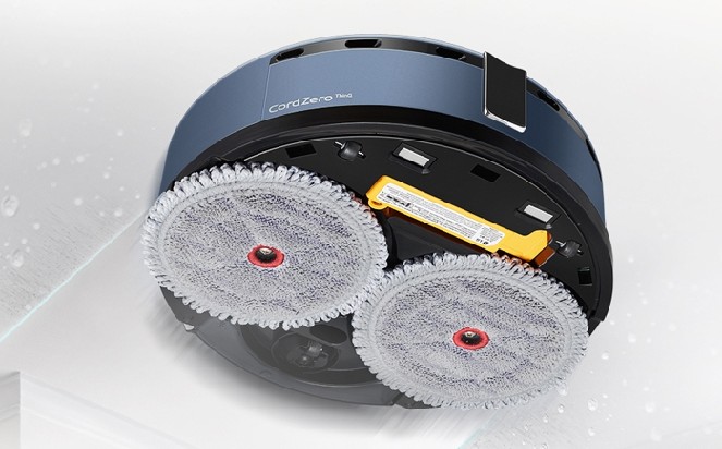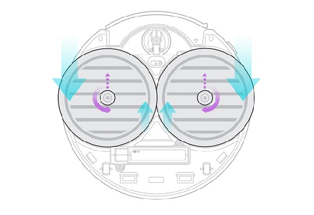 앞서 소개해드린 대로 주행 휠이 없어서 걸레가 더욱더 바닥에 밀착됩니다. 청소기가 약 2kg의 무게로 누르기 때문에 깨끗한 물걸레 청소를 기대할 수 있습니다.