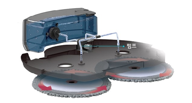 펌프를 통한 자동 물 공급 시스템이 있습니다. 사용자가 선택한 물 공급량에 따라서 공급이 됩니다. 3m*3m 공간을 60분 동안 청소하며, 물 공급 강 평균 150% 이상, 물 공급 약은 평균 110% 이상의 함수율을 유지합니다.