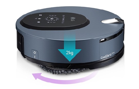 앞서 소개해드린 대로 주행 휠이 없어서 걸레가 더욱더 바닥에 밀착됩니다. 청소기가 약 2kg의 무게로 누르기 때문에 깨끗한 물걸레 청소를 기대할 수 있습니다.