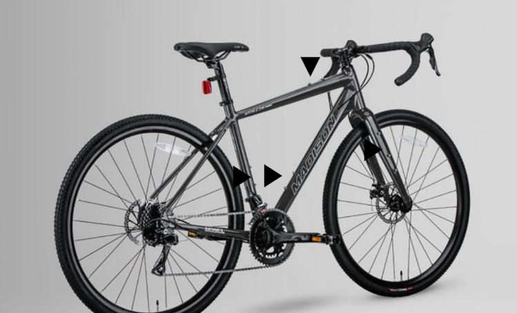 그래블 바이크 답계 다양한 수납공간을 지원합니다. 탑튜브, 다운 튜브(상/하), 시트 튜브, 포크 등의 여러 위치에 볼트 아일릿이 있어서 각종 장비의 수납이 용이하겠습니다.