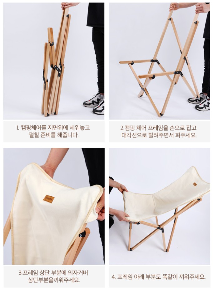 설치방법은 매우 간단합니다. 프레임을 펼친 후 의자 커버를 끼우면 끝나기 때문에 사용하지 않을 때는 수납하기도 편해 보입니다.