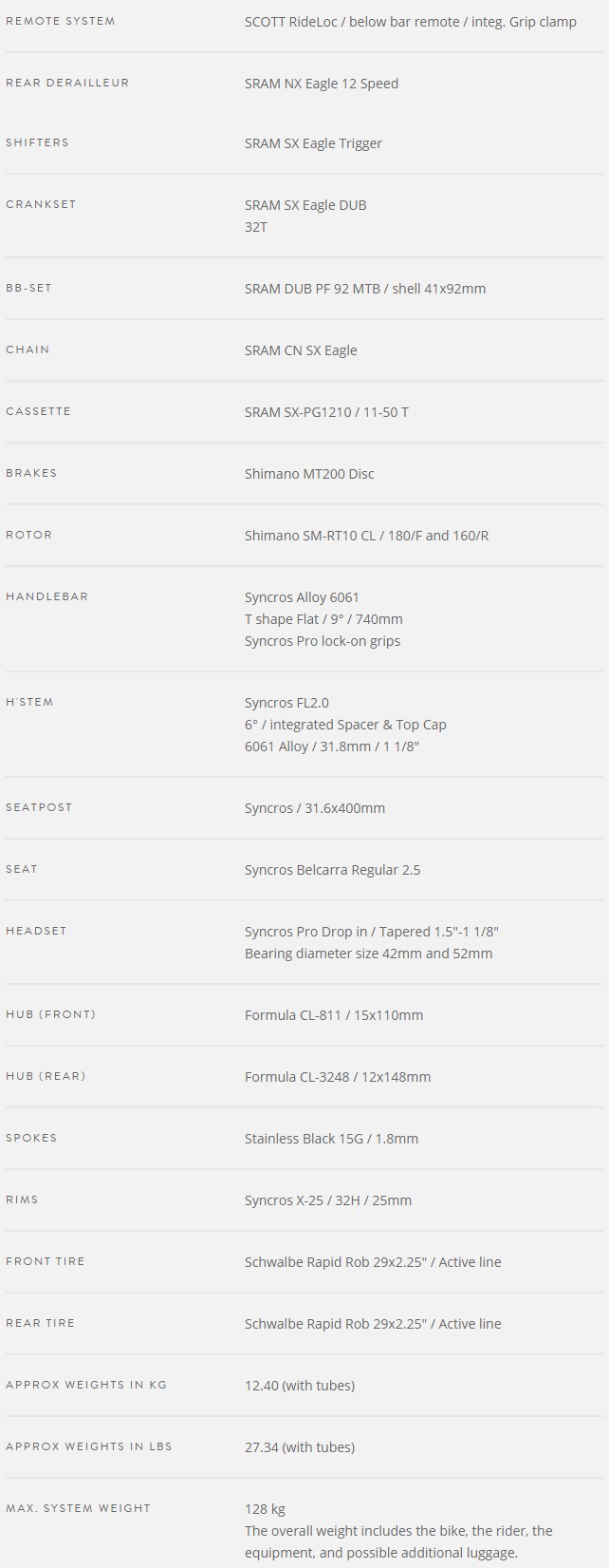 유명 자전거 브랜드중 하나인 스캇에서 나온 자전거로 20년 11월 등록이 되었습니다. 바퀴는 29인치(73.6cm)에 싱글 크랭크 12단입니다. 카본 프레임, 앞 서스펜션, 스램 변속기를 채용하였고, 유압식 디스크 브레이크입니다. 무게는 12.4kg으로 가볍습니다.