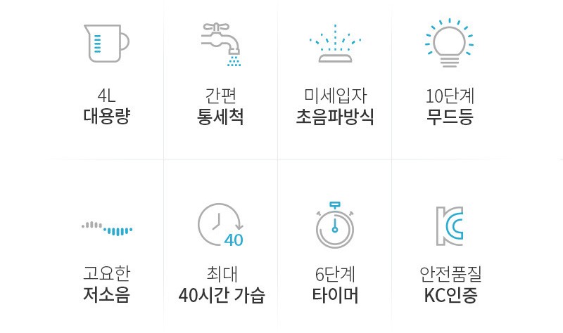 4점 대 (●'◡'●) 용량, 디자인, 관리, 소음, 가습효과, 가격, 사용성, 조작성