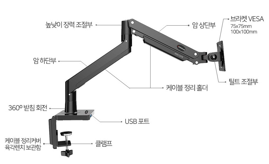 로리 스토어 알파플랜 AMA-LD1 싱글 모니터 거치대