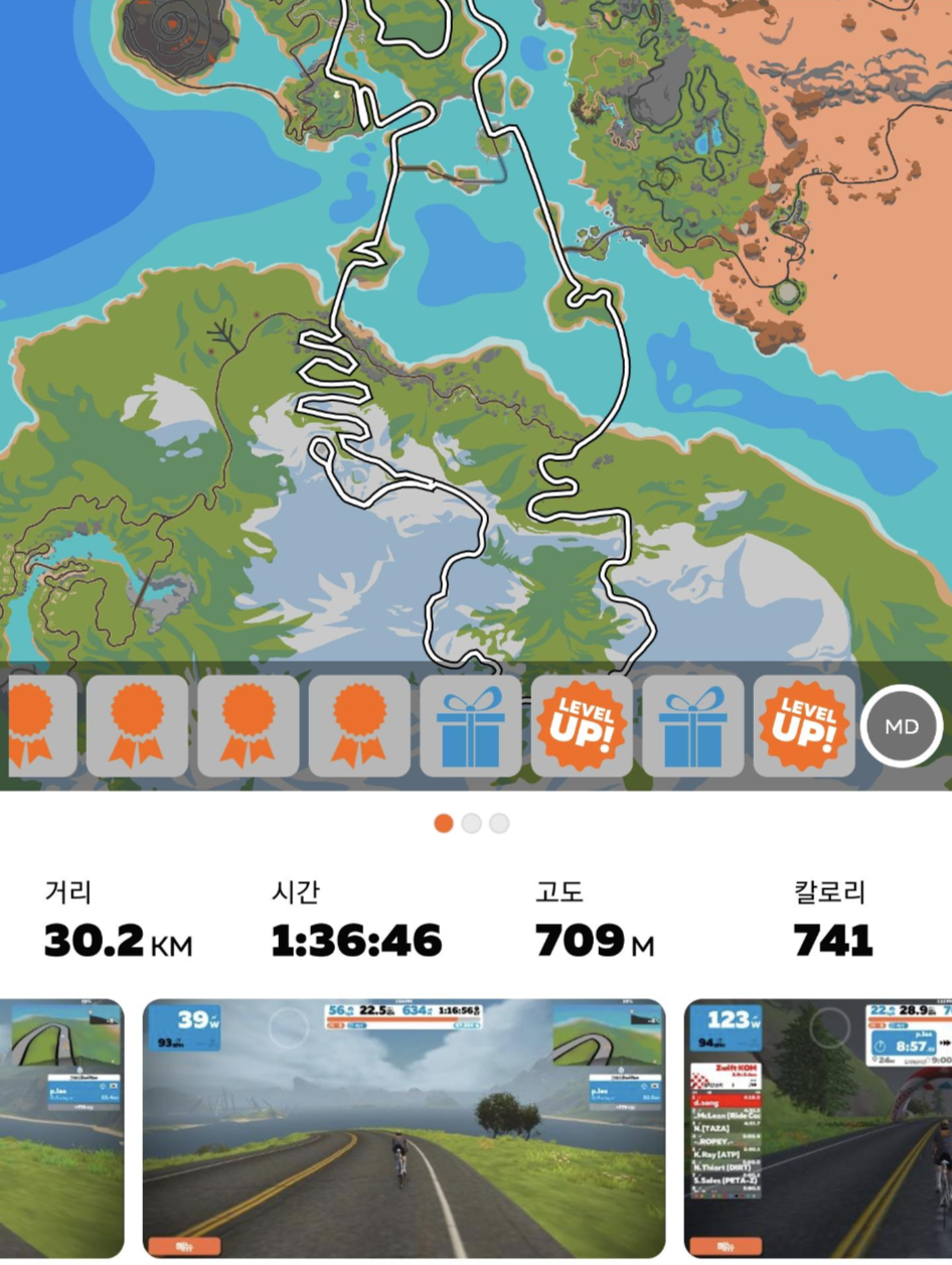 요즘에는 즈위프트를 일주일에 최소 3회 이상은 타고 있습니다.