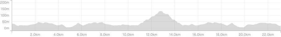 코스 중 최고 고도는 133m 코스이며 코스의 중간쯤에 나타납니다.