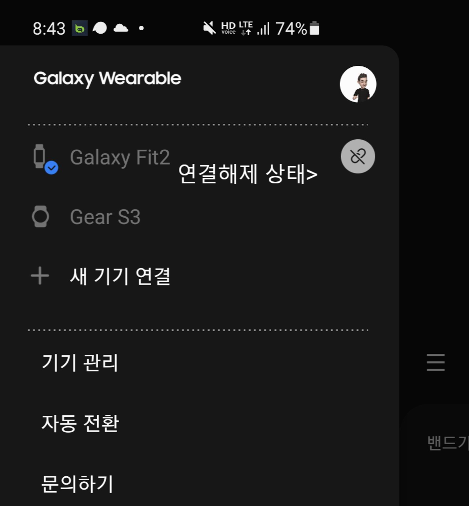 Galaxy Wearable앱에서 핏 2를 연결 해제하세요